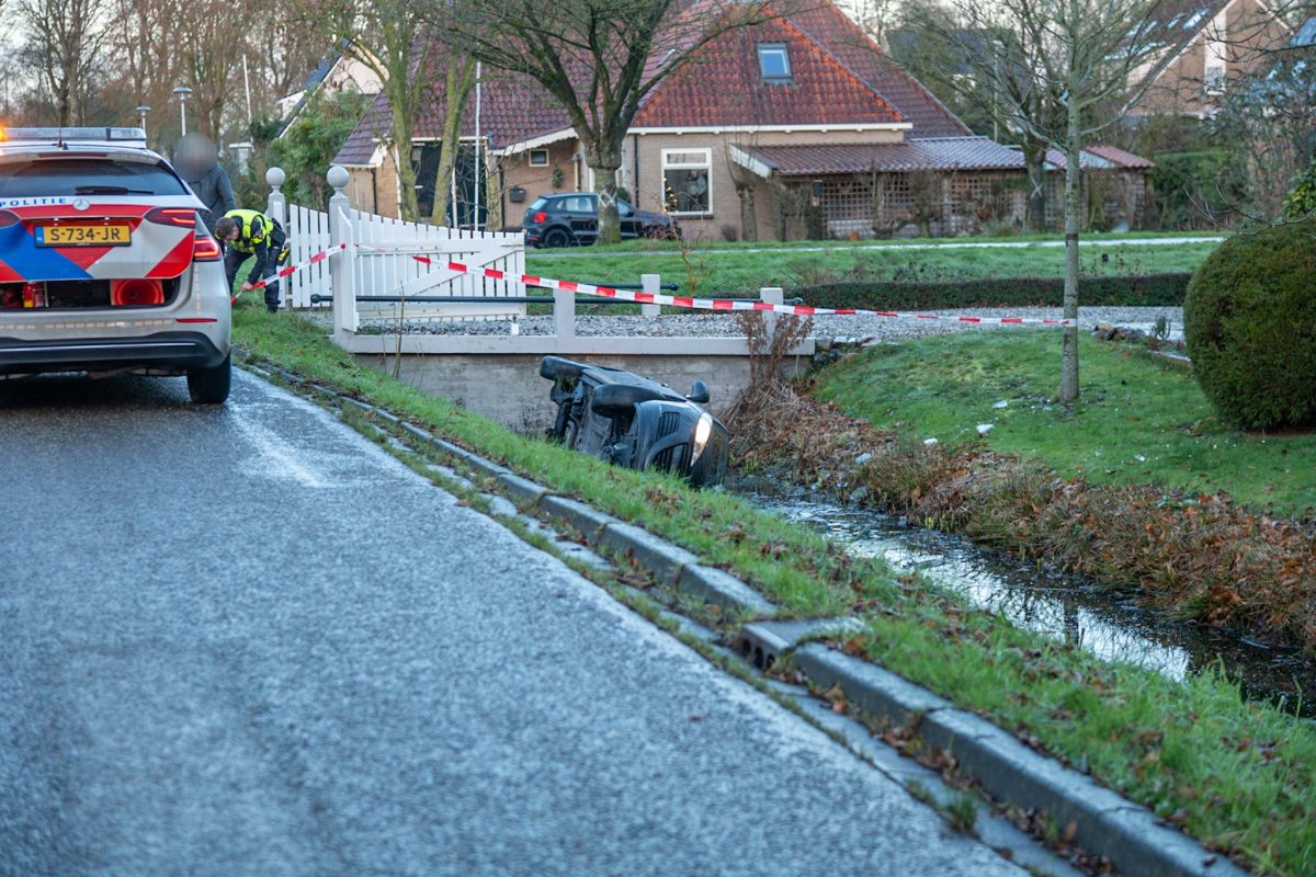 SNEEK – Een auto is woensdagochtend door gladheid in de sloot beland.
