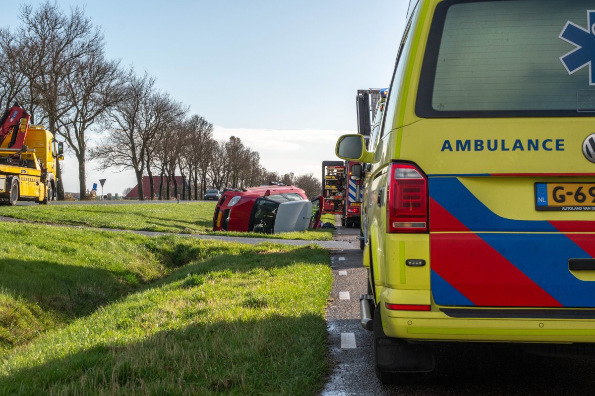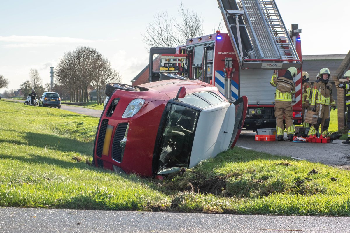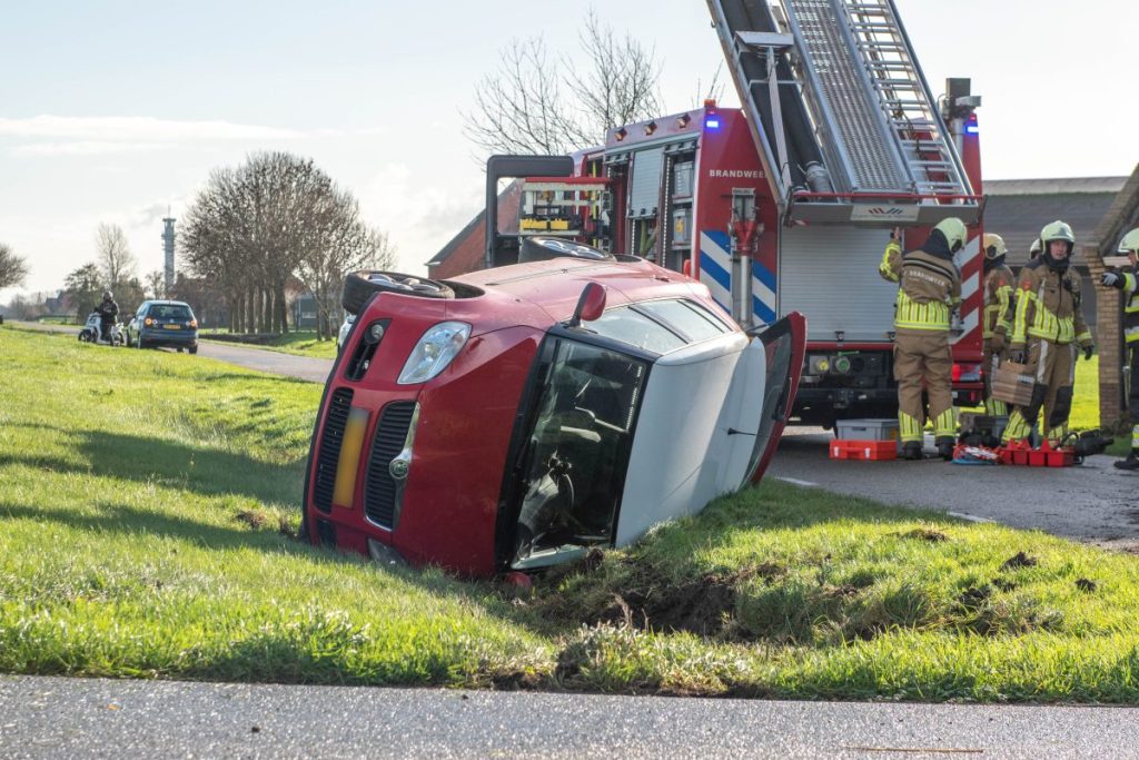 De auto belandde in de berm tussen de hoofdrijbaan en de parallelweg van de N354-Strjitwei.