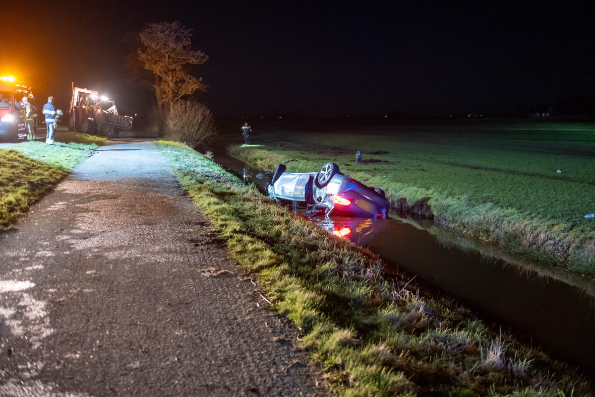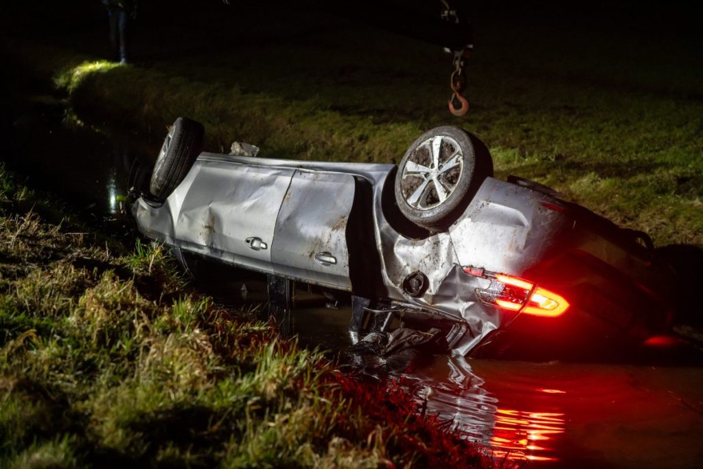 HOMMERTS – Maandagavond omstreeks 22:34 uur heeft op de Hettingawei in Hommerts een ernstig verkeersongeval plaatsgevonden. Een personenauto met vijf inzittenden raakte door nog onbekende oorzaak van de weg, verloor de macht over het stuur en belandde op de kop in de sloot naast de weg.