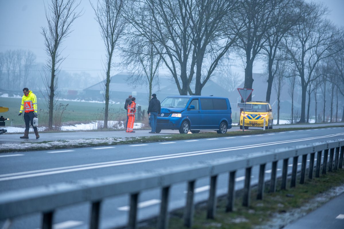 Rond 8:30 uur ging het mis op de N354-Snitserdyk. De personenauto moest remmen voor zijn voorganger wat te laat werd opgemerkt door de bestuurder van de bestelbus. Een kop-staart botsing volgde.