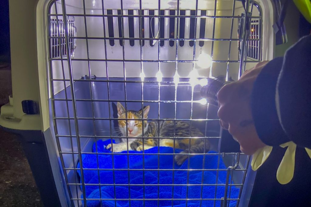 Omdat de poes behoorlijk wild was, is zij direct naar een dierenarts gebracht. Daar wordt gekeken of er een eigenaar bekend is en hoe het dier er medisch aan toe is.
