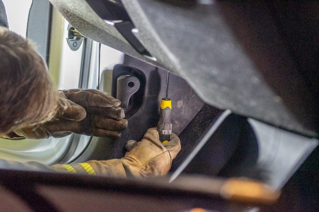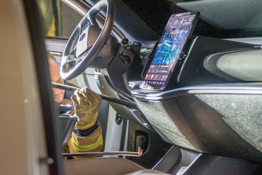 Met de poes in de auto reed ze vervolgens naar huis. Onderweg, ter hoogte van de Harste, ging het echter mis. Het beestje schrok kennelijk ergens van, sprong tussen de pedalen van de auto en kroop diep weg richting het motorcompartiment.