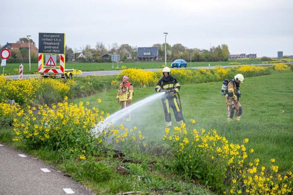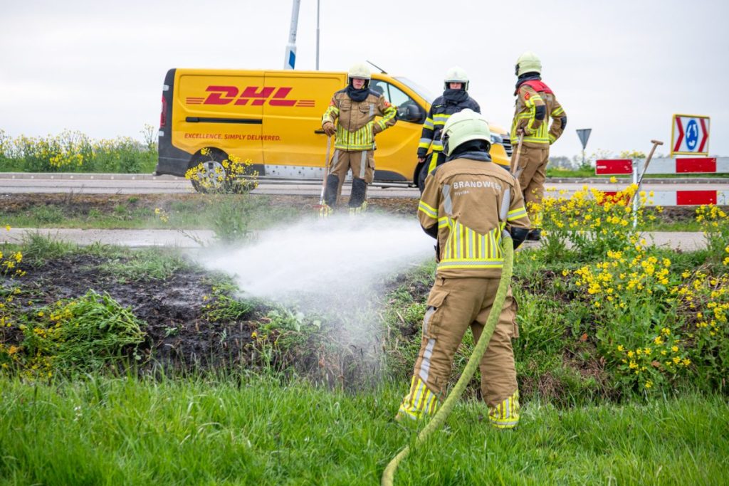 Bij aankomst stond een stuk berm van ongeveer 6 vierkante meter in brand. De brandweer had het vuur snel onder controle.