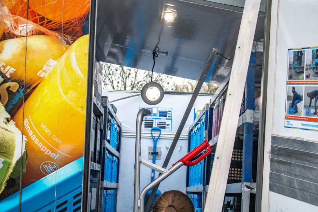 Een bergingsbedrijf heeft de bakwagen afgesleept. De chauffeur kwam met de schrik vrij.