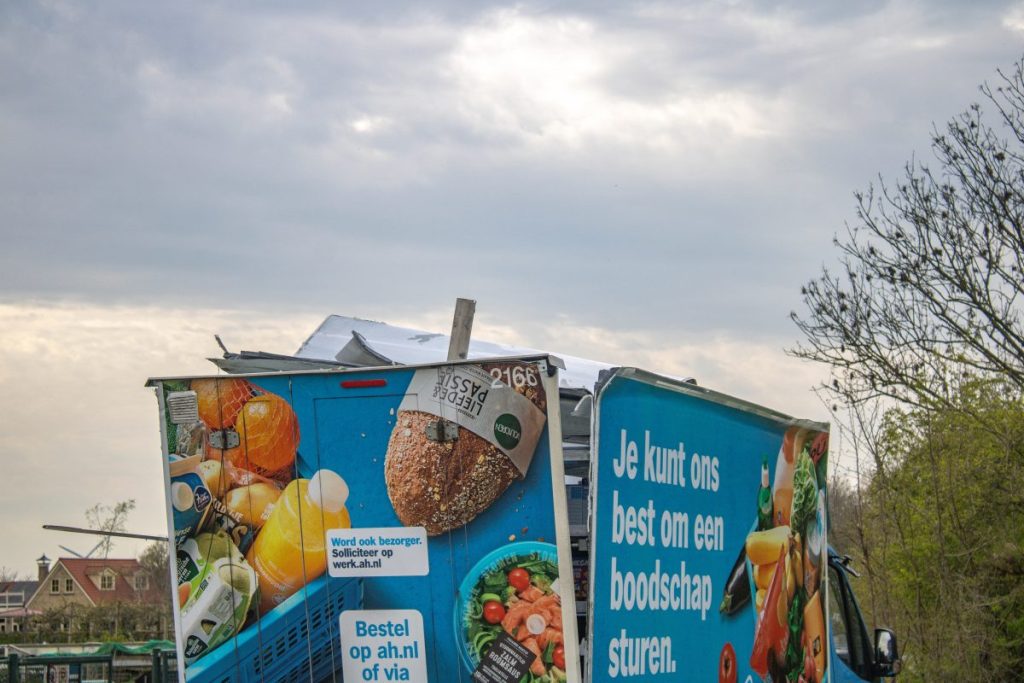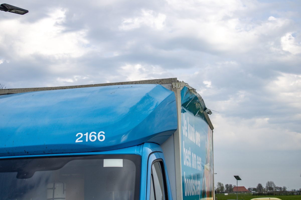 BOLSWARD – Een bestuurder van een bestelbus van de Albert Heijn heeft de bus donderdagmiddag kapotgereden onder een viaduct aan de Cnossenlaan in Bolsward.