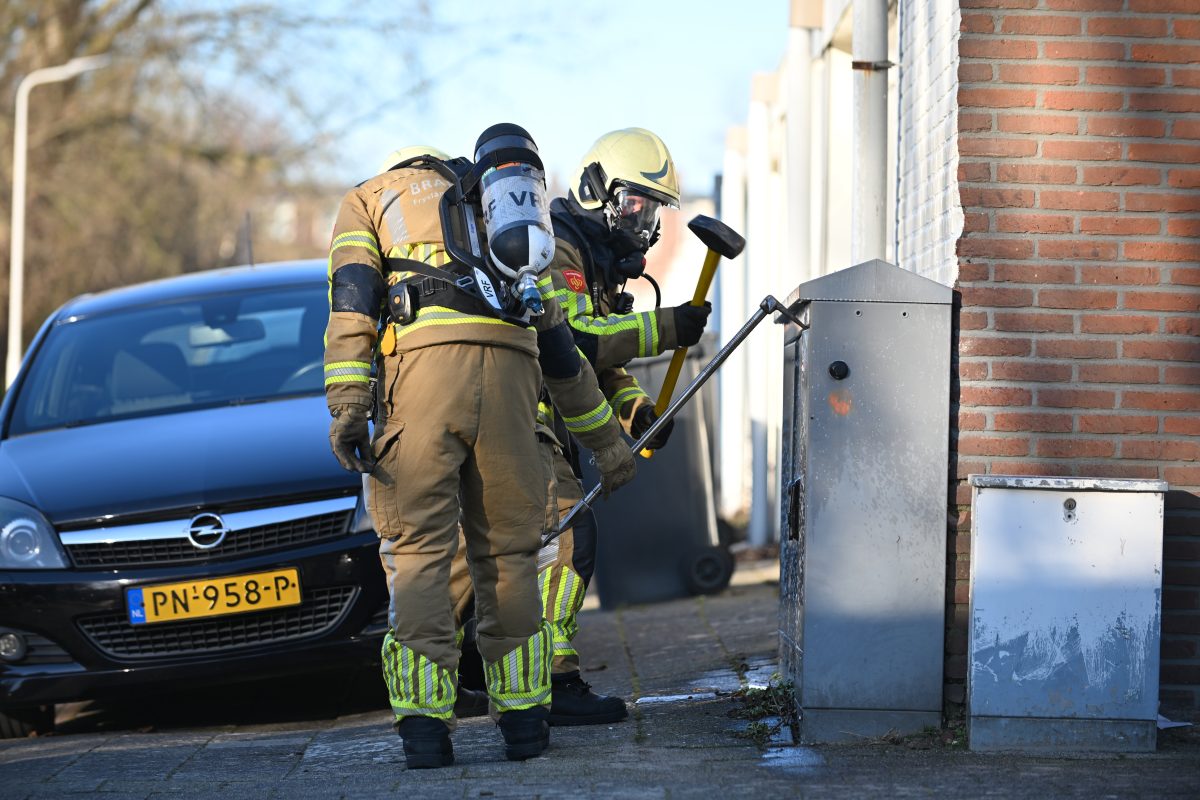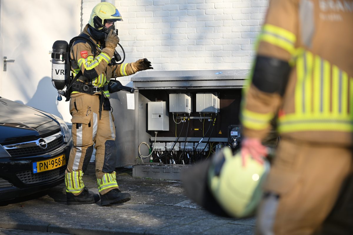 De brandweer werd om 15:32 uur met spoed gealarmeerd voor de brand nadat voorbijgangers rookontwikkeling uit de kast waarnamen.