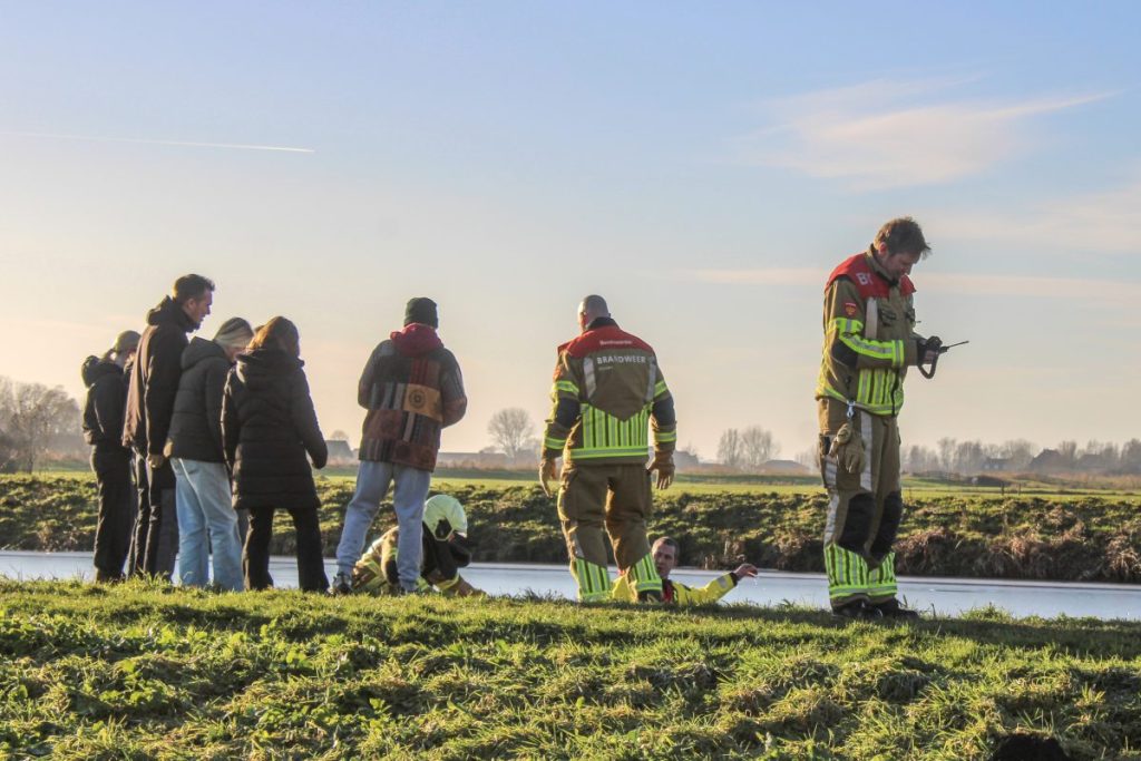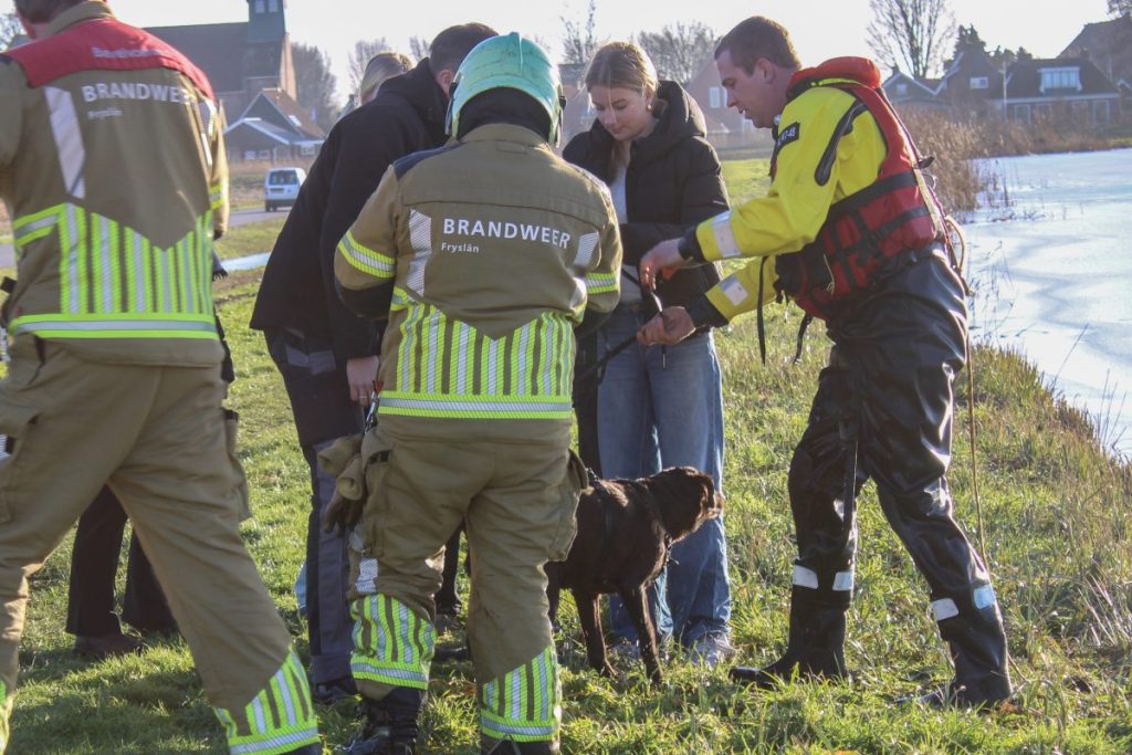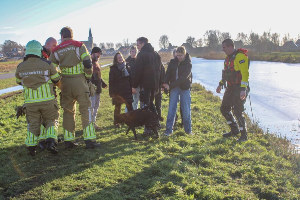 Rond 14:35 uur raakte de hond de balans kwijt en viel door het ijs in het koude water langs de dijk. Het lukte het baasje niet zelf om de hond weer op het droge te krijgen waarop ze de brandweer hebben gebeld.
