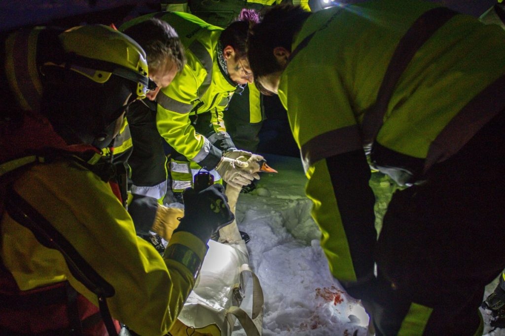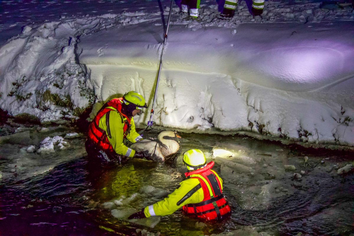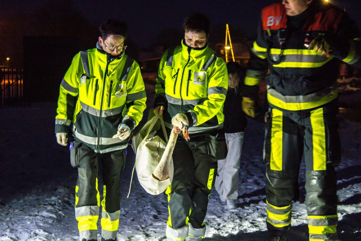 Na de redding is de zwaan overgedragen aan de dierenambulance. Zij hebben het dier meegenomen voor verdere controle en behandeling.