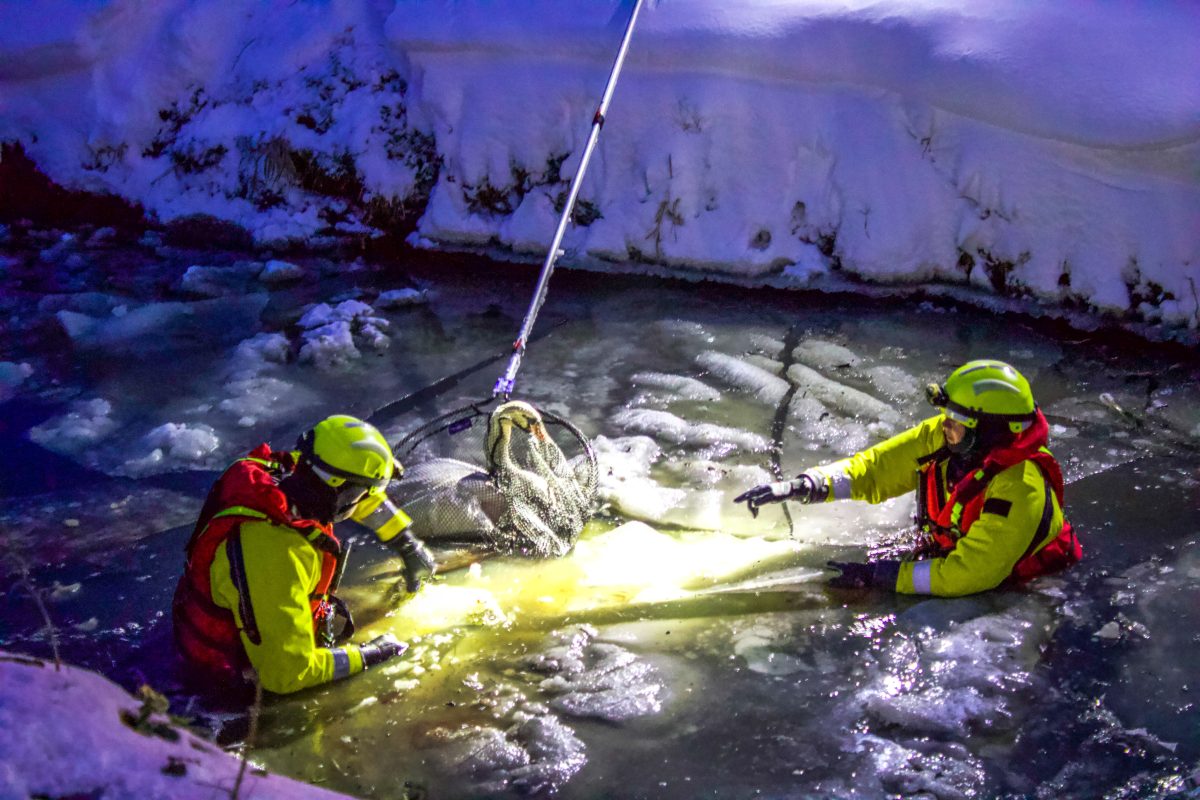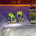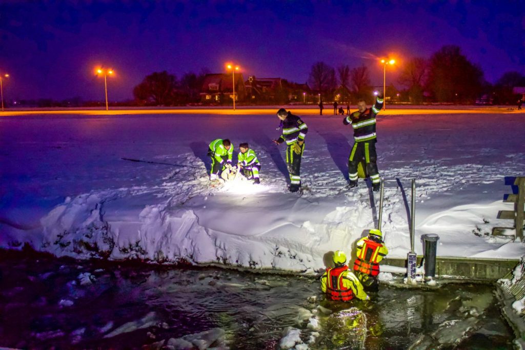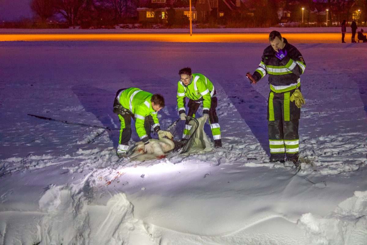 TERSOAL – Hulpdiensten zijn zondagmiddag rond 17.00 uur gealarmeerd voor een dier in het ijs aan de Buorren in Tersoal.