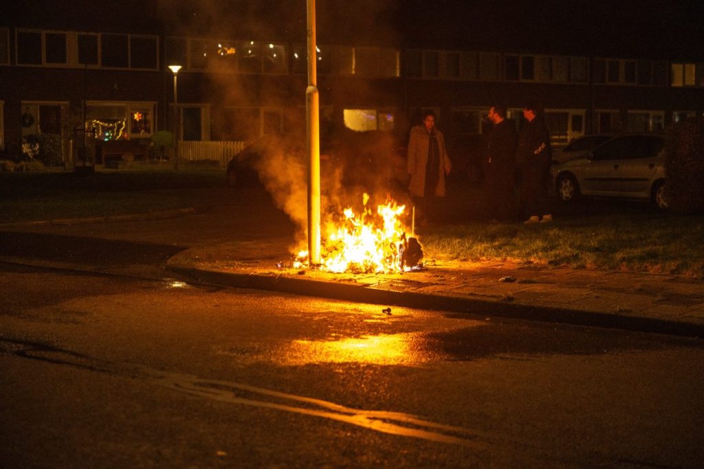 SNEEK – Een huisvuilcontainer is dinsdagavond door brand verwoest.