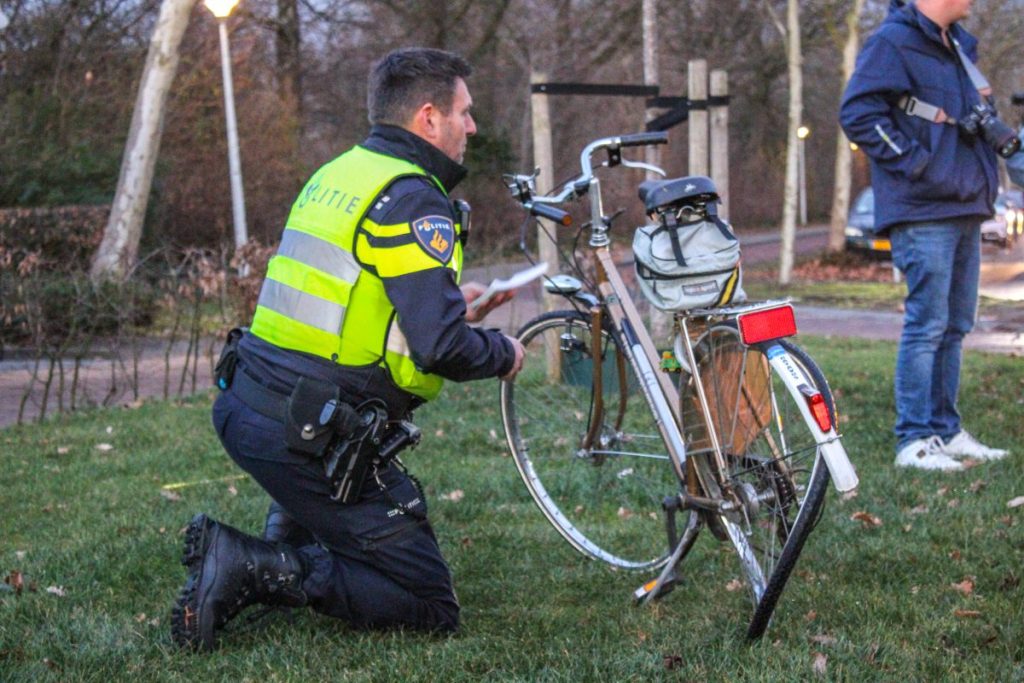 De fiets raakte fors beschadigd bij het ongeluk.
