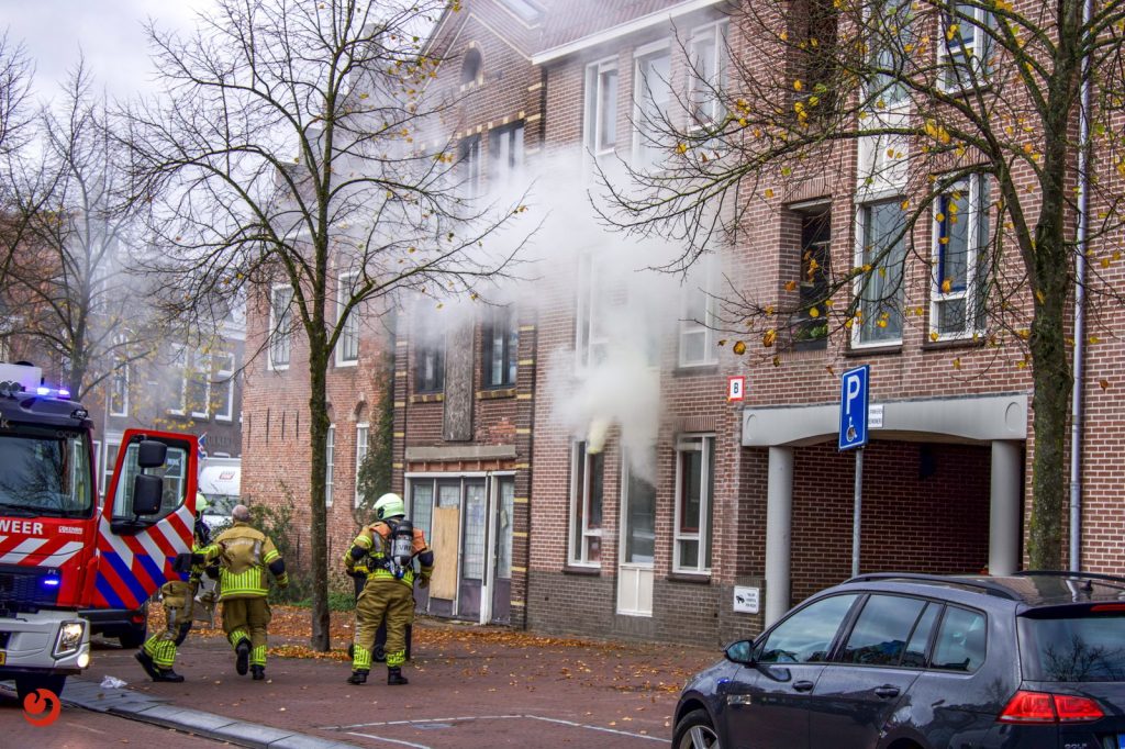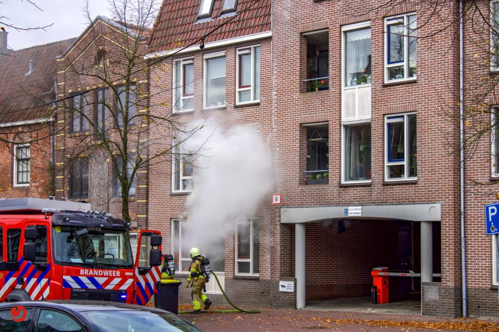 Even na 10:00 uur werd de brand ontdekt in een appartement aan de Singel in Sneek. Er kwam veel rook uit het pand waarop direct hoger is opgeschaald.