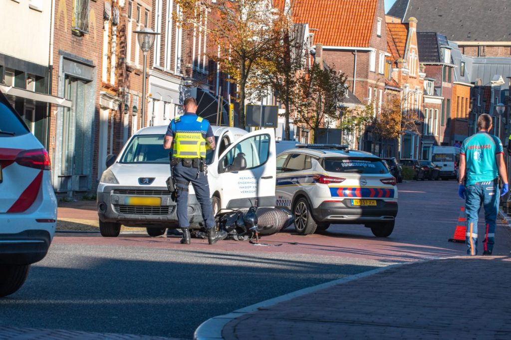 SNEEK – De bestuurder van een scooter is woensdagmorgen met de schrik vrijgekomen na een botsing met een bestelbusje in het centrum van Sneek.
