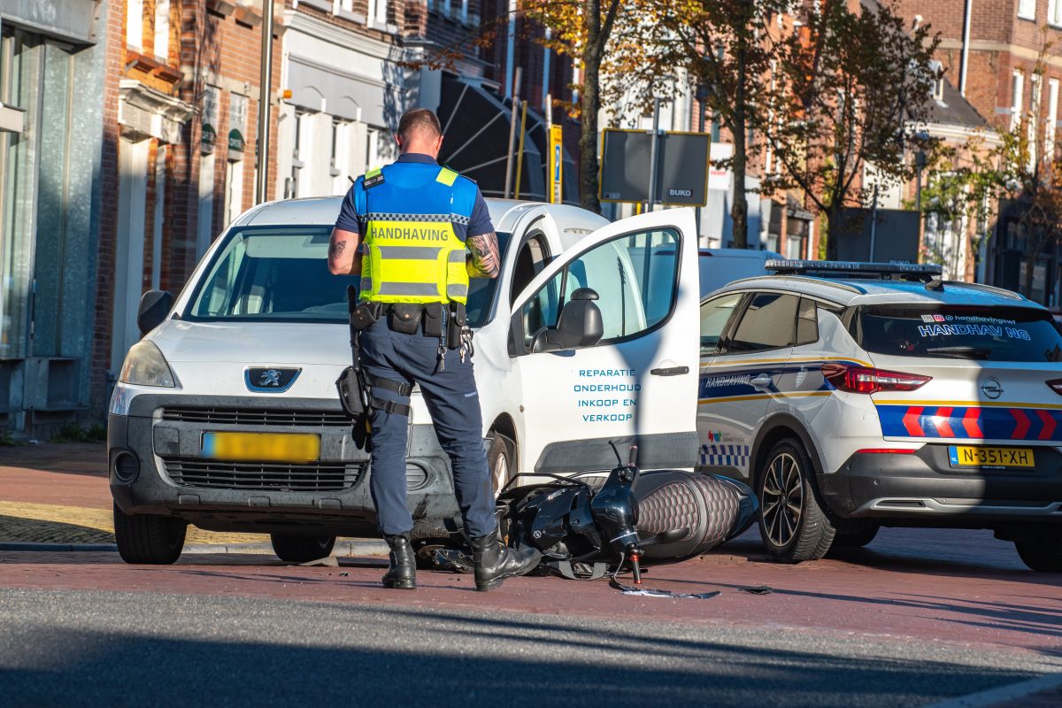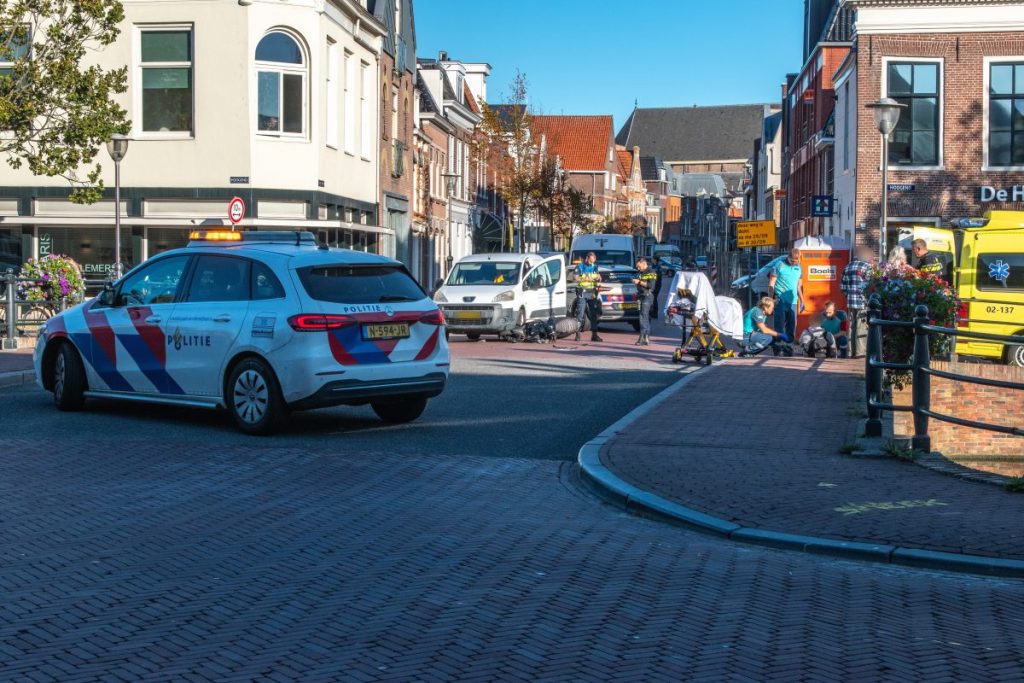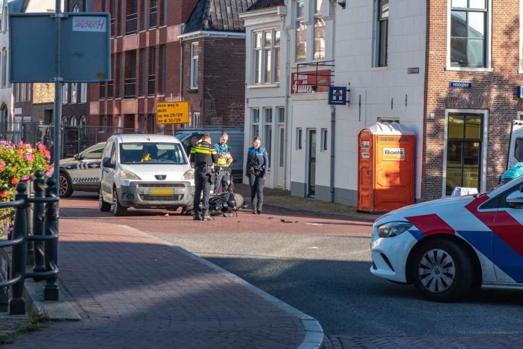Rond 9:15 uur ging het mis op de kruising Oude Koemarkt met het Hoogend. De bestuurder van de scooter verleende geen voorrang aan het bestelbusje waarna ze botsten.