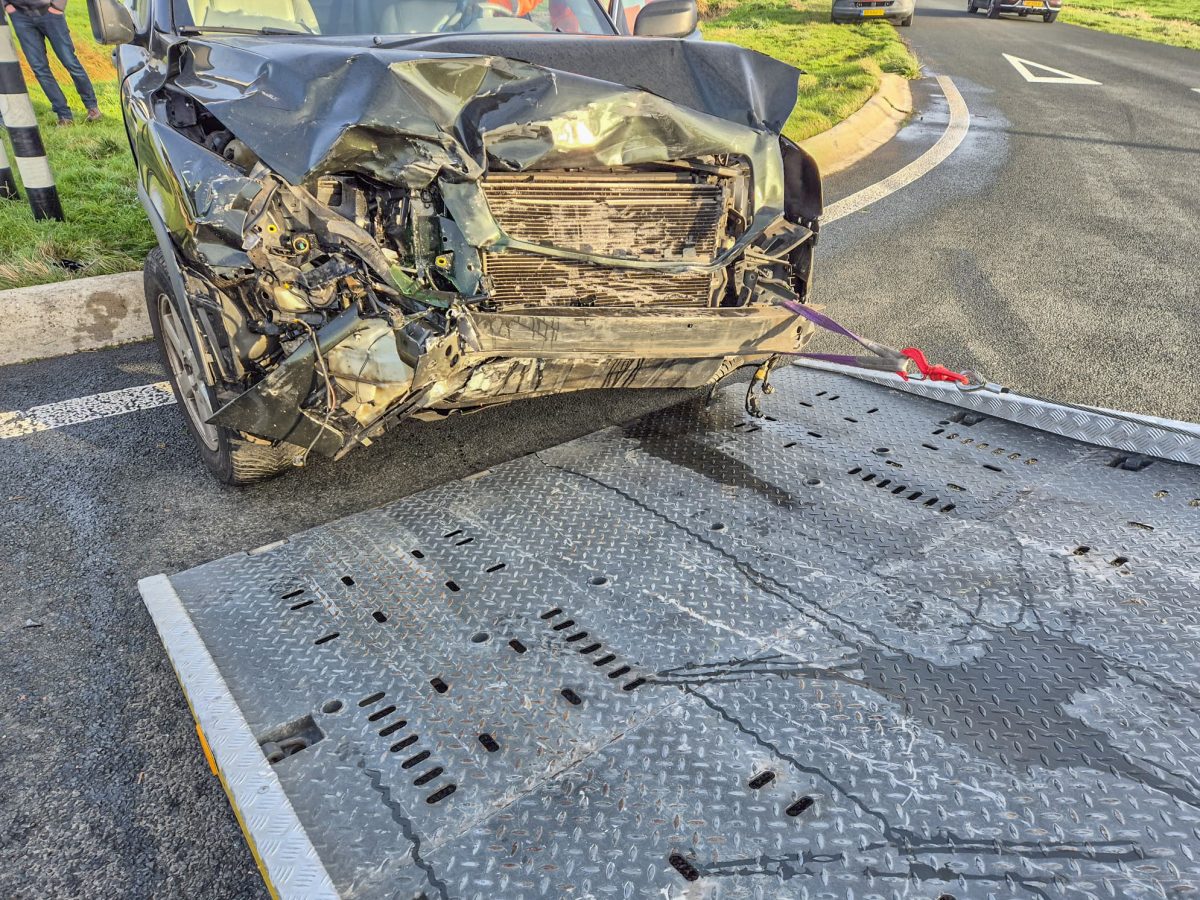 Omdat de deur van de Nissan door de klap niet meer te openen was, heeft de brandweer het voertuig open moeten knippen. Nadat de deur was verwijderd, kon de bestuurster zelfstandig uitstappen. Na controle door het ambulancepersoneel bleek dat vervoer naar het ziekenhuis niet nodig was.