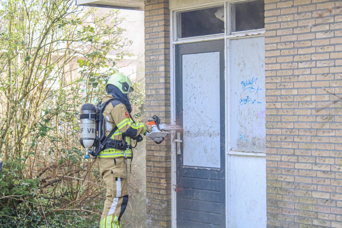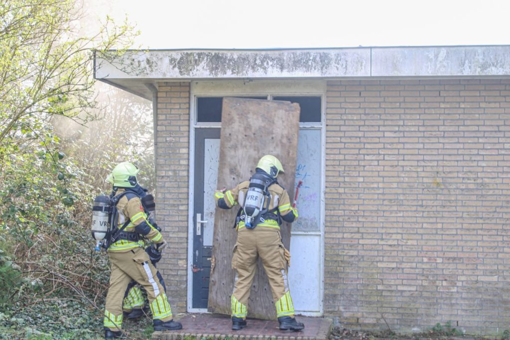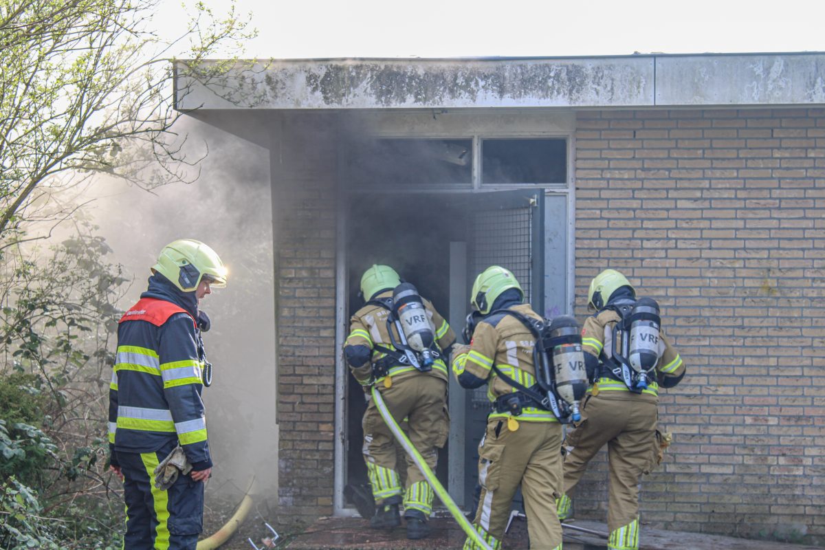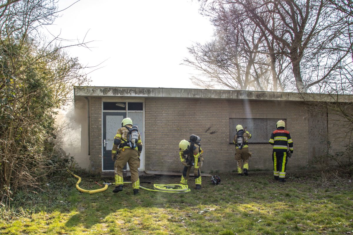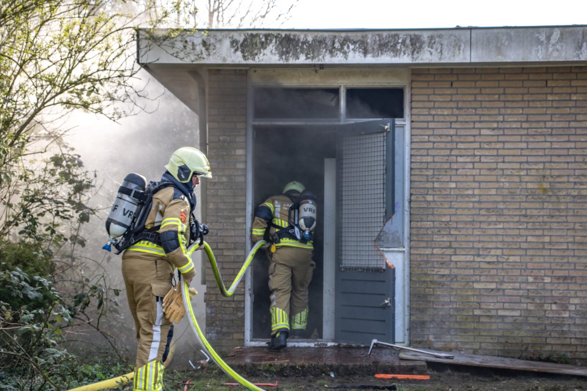 Bij aankomst bleek er sprake van flinke rookontwikkeling in een oude voetbalkantine. De brandweer heeft de deur van het pand open gezaagd om toegang te krijgen en is direct gestart met bluswerkzaamheden. De brand woedt in het dak van het gebouw, waardoor de brandweer moeite heeft om de brandhaard goed te bereiken.