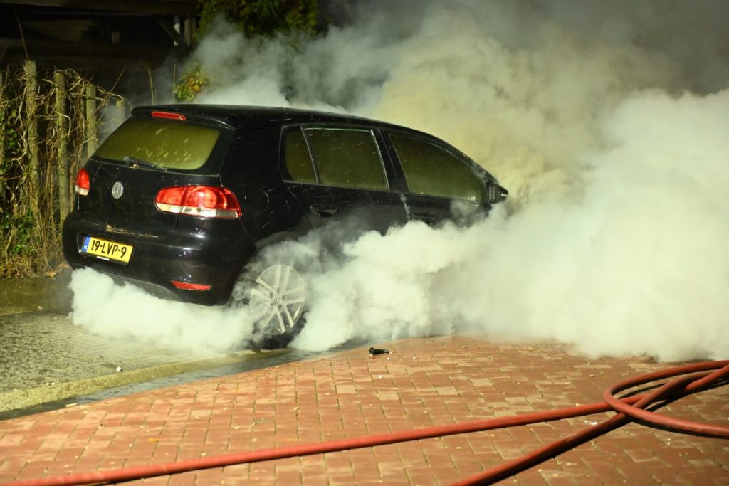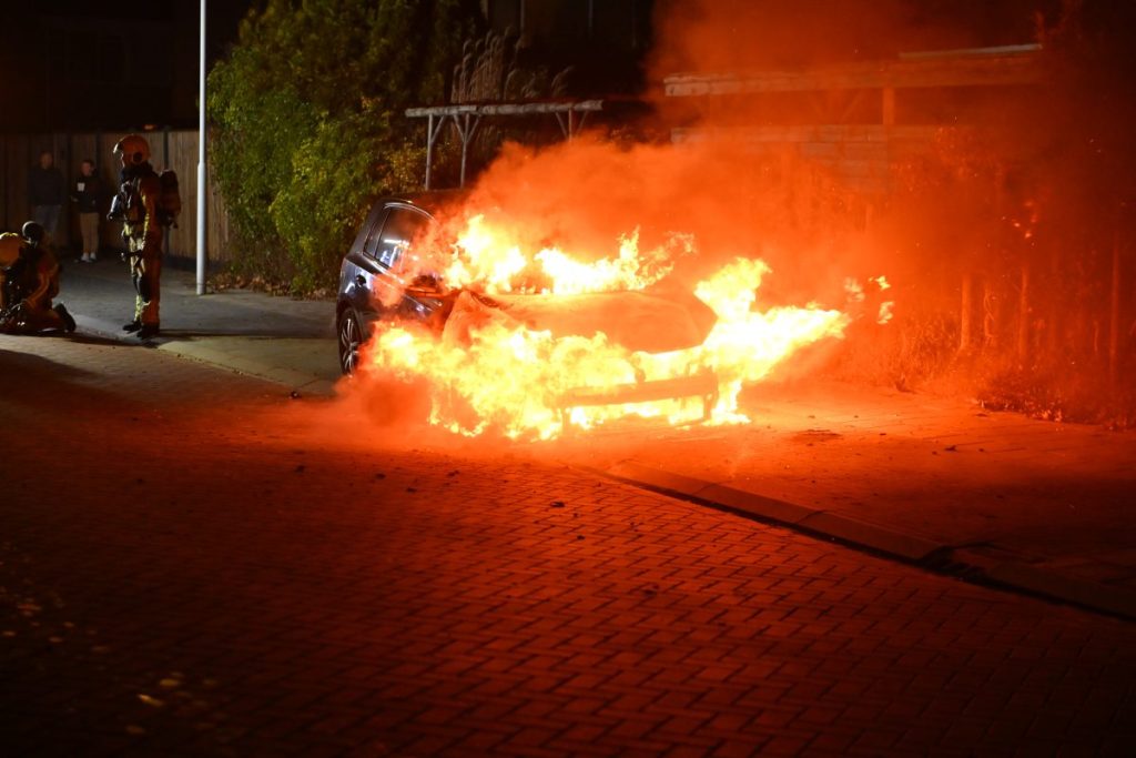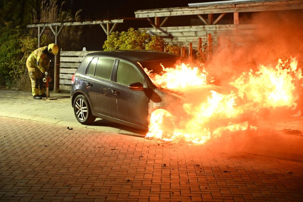Bij de auto is een aansteker aangetroffen. Brandstichting is niet uitgesloten.