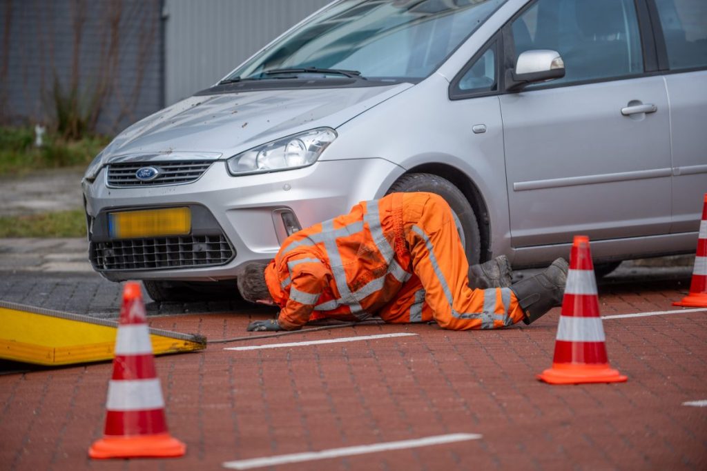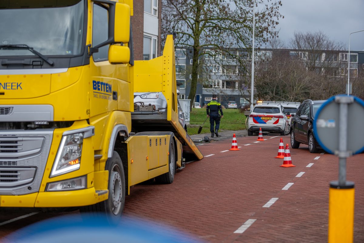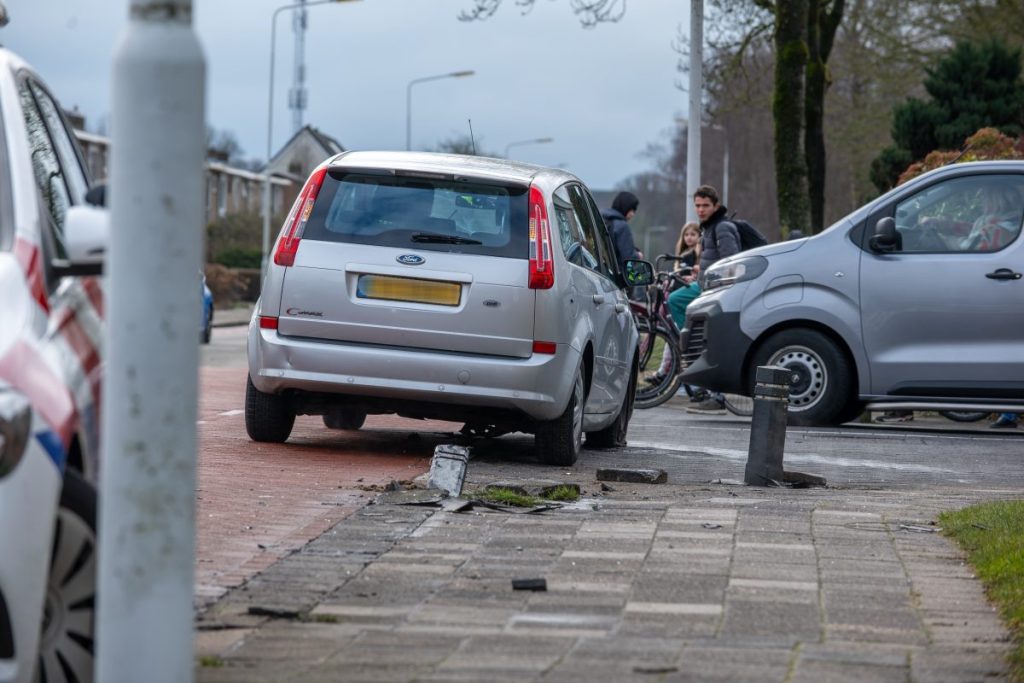 De auto bleek niet opgewassen te zijn tegen het paaltje en raakte flink beschadigd evenals het paaltje en het trottoir. Dit zal later gerepareerd gaan worden. De auto is afgesleept.