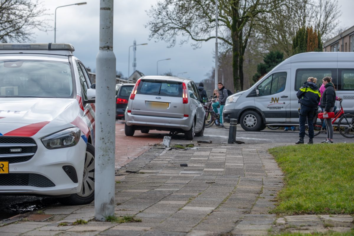 De onfortuinlijke vrouw sloeg rond 14:25 uur af om de Jancko Douwamastraat in te rijden. Hierbij zag de vrouw een paaltje over het hoofd waar zo overheen reed met haar auto.